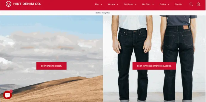 Le positionnement haut de gamme et l'accent mis sur l'artisanat rendent Hiut Denim Co. unique. Le site Shopify reflète parfaitement cette identité avec une mise en avant des processus de fabrication et des témoignages clients.