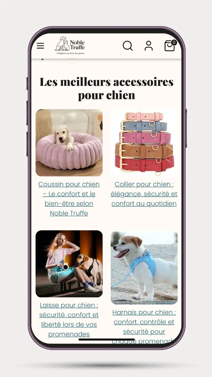 NobleTruffe est une marque e-commerce dédiée aux accessoires premium pour chiens, avec une attention particulière portée au confort, à l’esthétique et à l’expérience client.